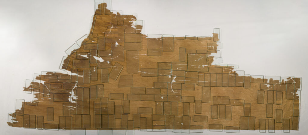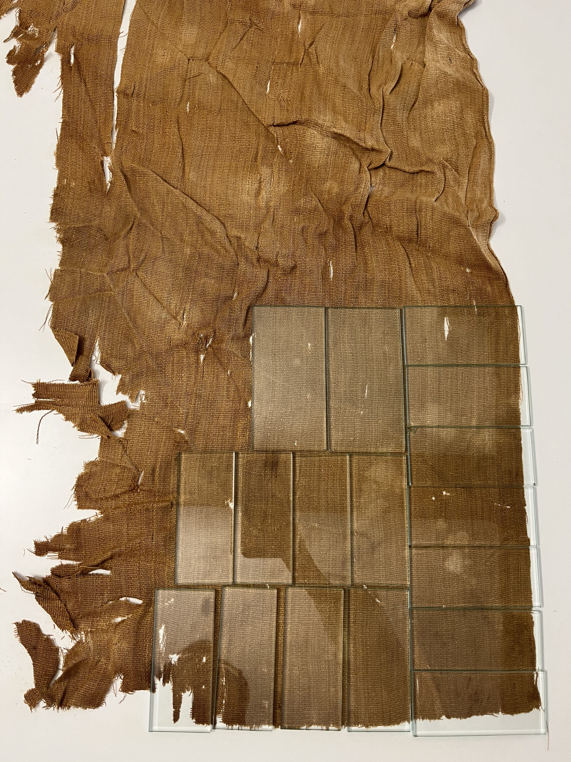 Textile fragments in large-format linen canvas. Funeral kit of the tomb of Merit