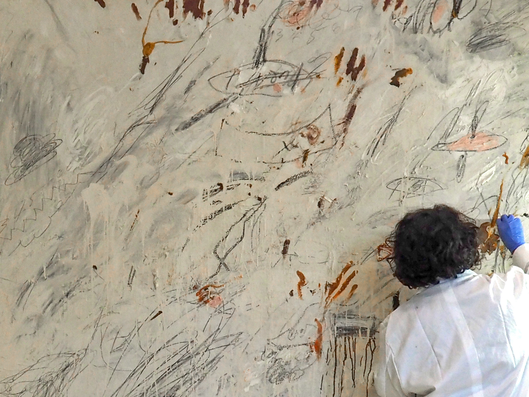 The large size and the particularity of the execution technique (painting and graffiti on canvas with oil, acrylics, wax pastels and charcoal) involved a preliminary diagnostic phase, as a result of which it was possible to intervene on the crept pictorial layers and improve the structural function of the canvas / frame system. In addition, some criteria have been defined to allow the museum to monitor the conservation conditions of the work both during permanent and temporary exhibitions.
