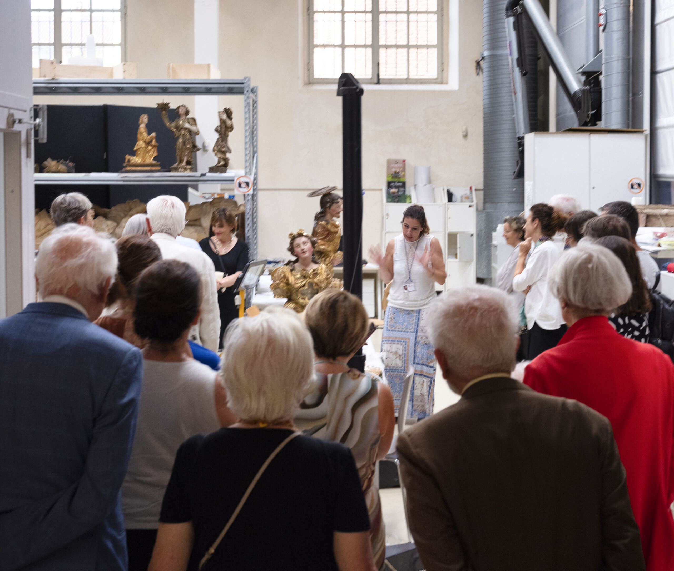 with guided tours and thematic tours in the Restoration Laboratories, in the Scientific Laboratories and in the construction sites.