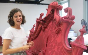 She graduated in 2013 in Conservation and Restoration of Cultural Heritage from the University of Turin in agreement with the Fondazione Centro Conservazione Restauro “La Venaria Reale”, specializing in textile and leather artifacts. After a short period spent as a freelance at the Centro Conservazione Restauro “La Venaria Reale” she worked at the Museo del Tessuto in Prato as an external collaborator and as an intern at the Vatican Museums. In September 2014, she moved to London to work as a textile restorer at Historic Royal Palaces, the charity that manages six royal palaces including Hampton Court, Kensington and the Tower of London. Since 2020, she has worked as a Senior Textile Conservator and has been accredited by the Institute of Conservation, where for three years she worked as a training event organizer for fabric restorers.